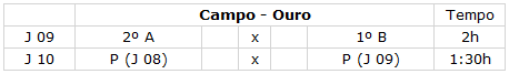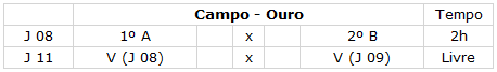 (quarto) colocados da chave OURO e os jogos das demais chaves serão definidas