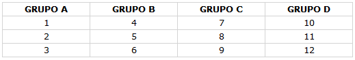 No sábado (08/jun), as 12 equipes serão divididas por sorteio dirigido em quatro grupos A, B, C e D de três equipes cada onde jogarão dentro dos grupos conforme a tabela.