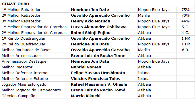 o Gecebs, Ibiúna, Londrina, Marília, Maringá e Nippon Blue Jays.