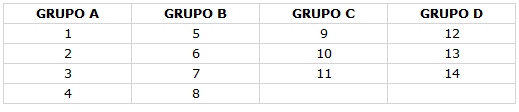 No sábado (06/jul), as 14 equipes serão divididas por sorteio em dois grupos A e B com quatro equipes e dois grupos C e D com três equipes cada, onde jogarão dentro dos grupos conforme a tabela.