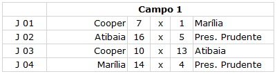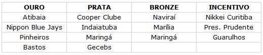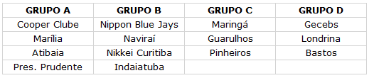 o Atibaia, Bastos, Cooper Clube, Gecebs, Guarulhos, Indaiatuba, Londrina,
