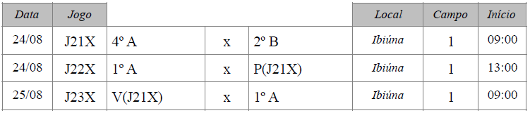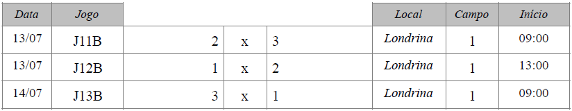 se encontrarem, dos jogos já realizados, etc. Quando chover, as equipes deverão
