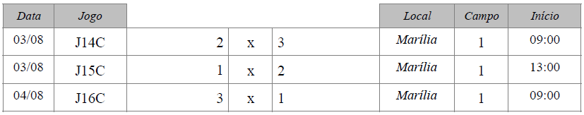 Grupo C (Interior): Marília A, Marília B e Presidente Prudente
