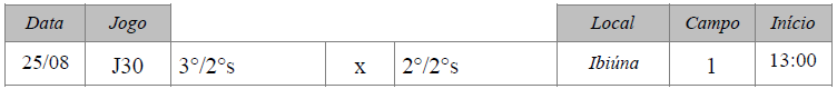 f.A tabela não será alterada em função dos jogos não realizados (por exemplo chuvas). Os jogos interrompidos antes do 5º inning ou não realizados por causa da chuva, um novo jogo será reagendado em local e data a serem definidos pela Comissão Técnica do Campeonato. Os jogos interrompidos por causa da chuva depois de fechar o 5º inning e se estiverem empatados, a continuação será reagendada em local e data a serem definidos pela Comissão Técnica do Campeonato. Os jogos empatados após 9 innings serão decididos por Tie Break;