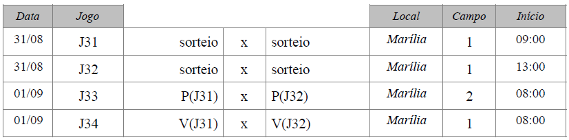 Fase Final: 31/08 e 01/09/2019 (Local: Marília-SP)
