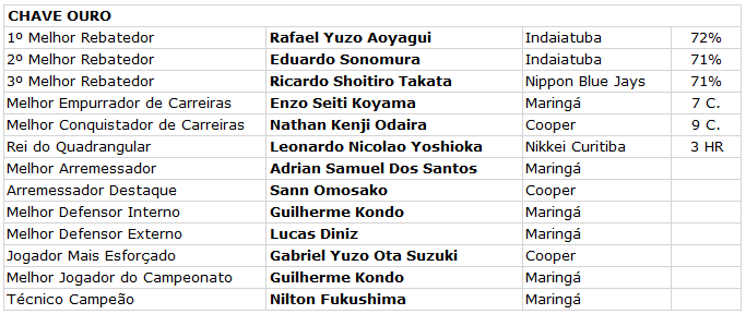 Abaixo todos os placares e premiados desta edição: