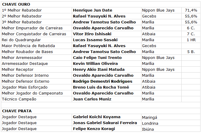 Abaixo todos os placares e premiados desta edição: