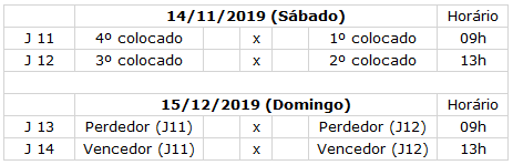 Fase Final: semifinal e final;