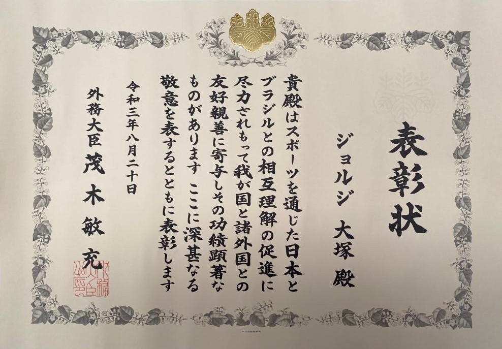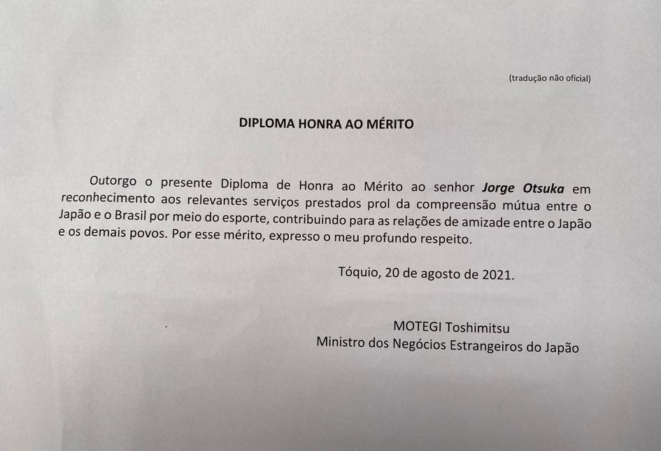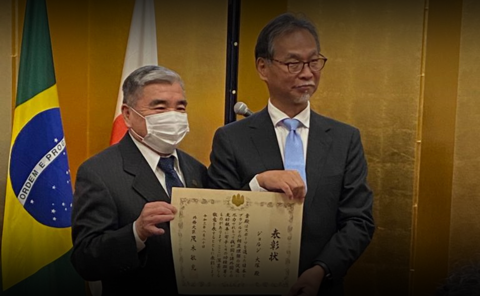 Presidente da Confederação, Jorge Otsuka, recebe o Diploma de Honra ao Mérito do Ministro dos Negócios Estrangeiros do Japão