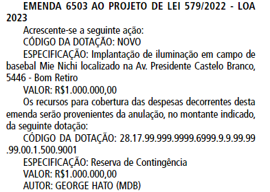 Mas em seu 65º ano de vida, graças a emenda de lei apresentada pelo vereador George Hato, o Mie Nishi deverá receber a iluminação como presente. A reserva de contingência do valor da obra foi publicada ainda no final de 2022 no diário oficial da cidade.