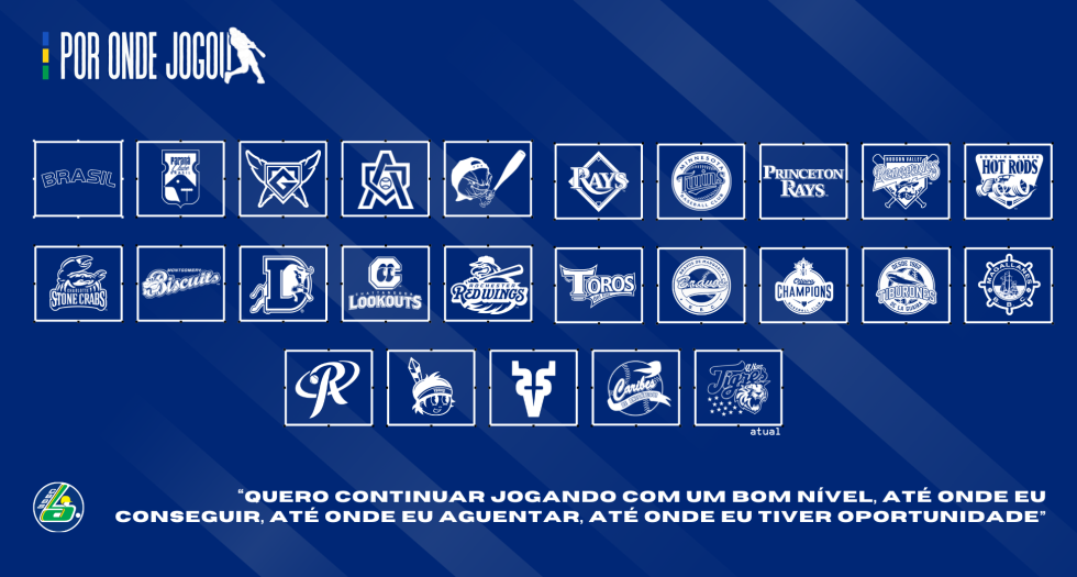 - EUA: Tampa Bay Rays, Minnesota Twins, Princeton Rays, Hudson Valley Renegades, Bowling Green Hot Rods, Charlotte Stone Crabs, Montgomery Biscuits, Durham Bulls, Chattanooga Lookouts e Rochester Red Wings