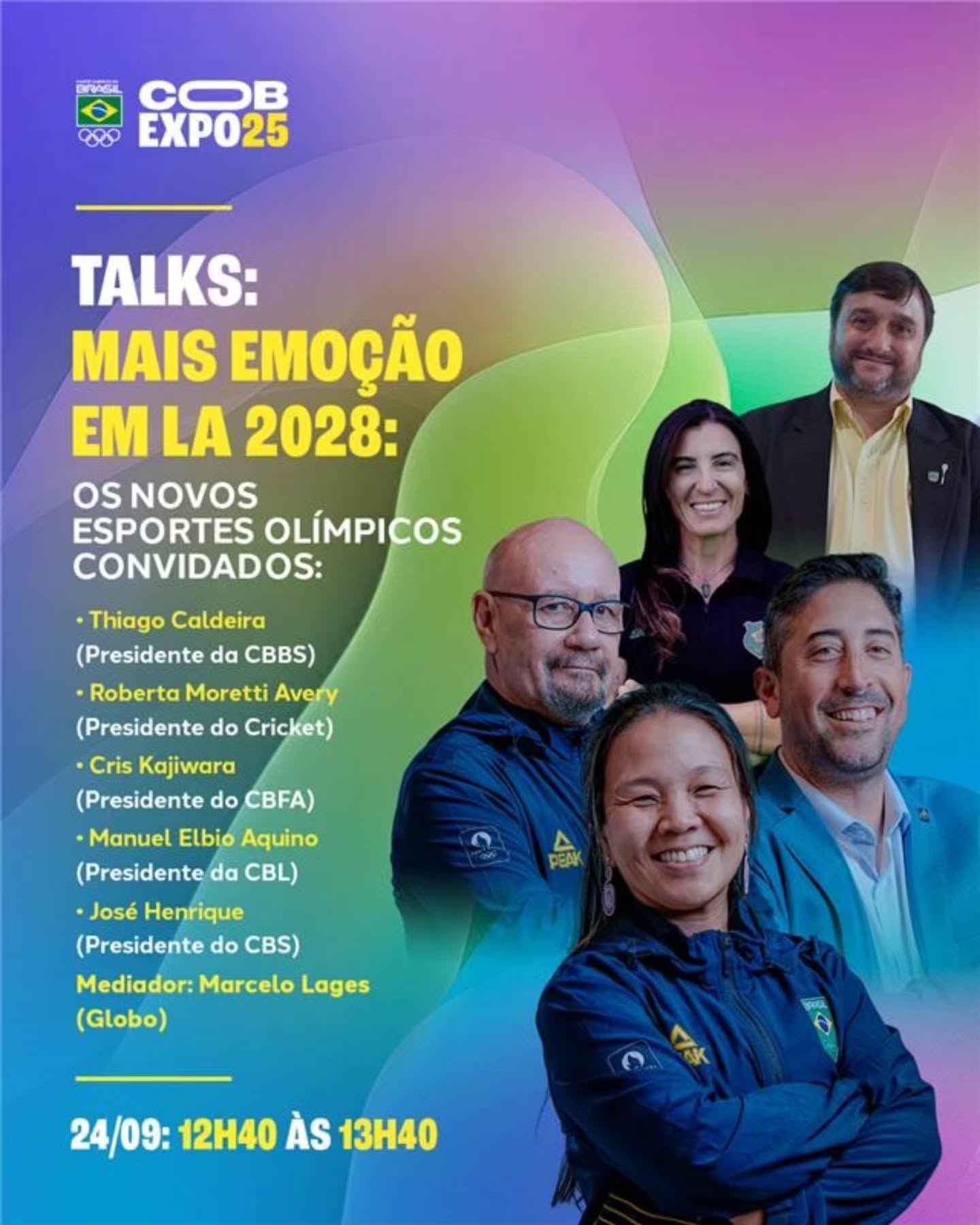 A CBBS neste ano, além do estande, com exposição de material, uniformes, informações sobre nossas modalidades e venda de bonés oficiais da Seleção de Beisebol, contará com uma palestra, falando do futuro do beisebol no Brasil (O Esporte dos Bilhões: Por que o Beisebol pode ser o próximo gigante no Brasil) e um Talks com as demais modalidades que entram em Los Angeles 2028 (Flag Football, Críquete, Squash e Lacrosse), com a participação do Presidente Thiago Caldeira.