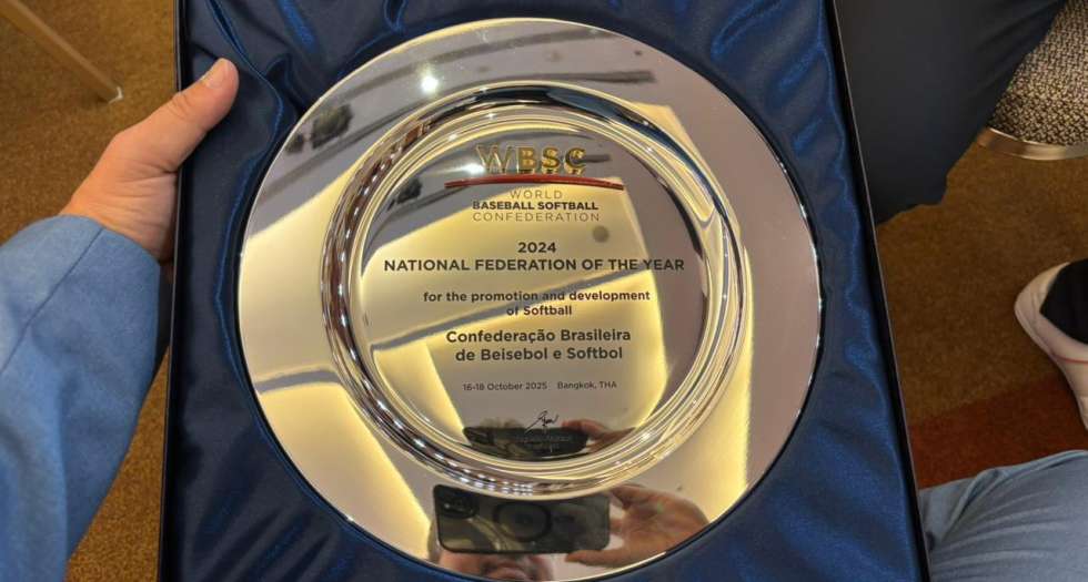 O troféu, entregue pelo presidente da WBSC, Riccardo Fraccari, diretamente para o presidente da CBBS, Thiago Caldeira, é o primeiro do tipo que a Confederação recebe da entidade maior do beisebol e softbol mundial.